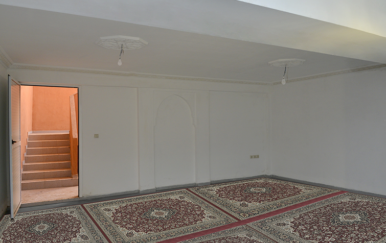 مسجد للصلاة، مراحيض، موقف للسيارات وفضاءات خضراء